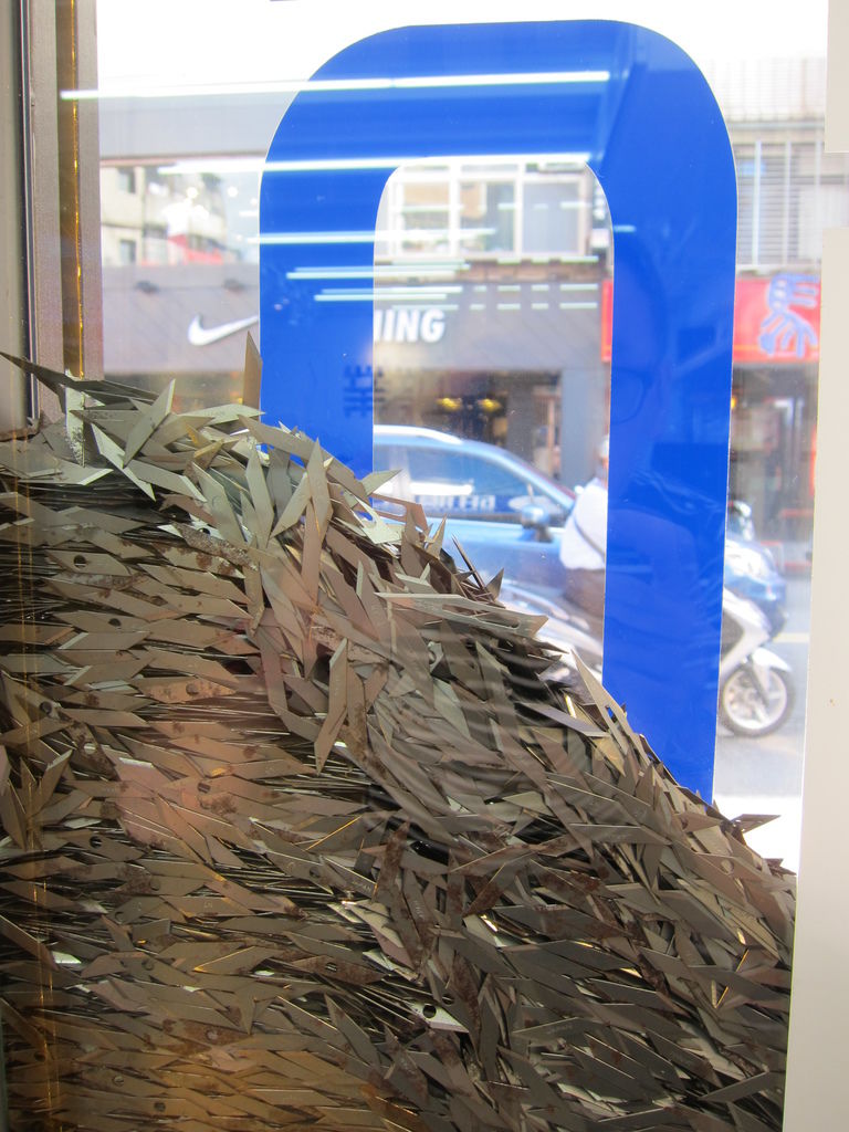 一進門右手邊陳列著一排各式彩膜的作品供客人選擇樣式,
