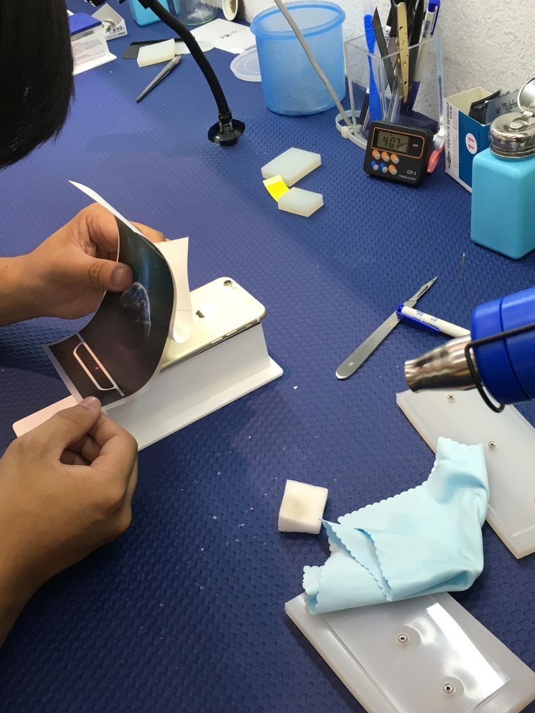 不過老板說,客人將一隻隻昂貴的手機交給他包膜處理,