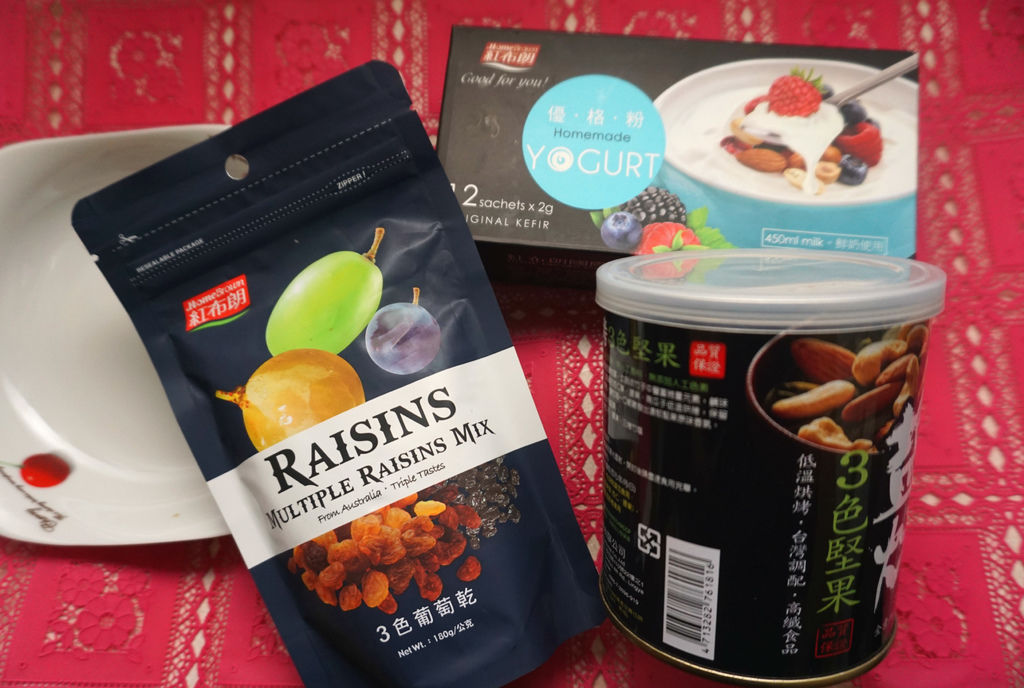 所以這次除了優格粉之外,還一併將堅果及寶弟愛吃的葡萄乾一併購入,