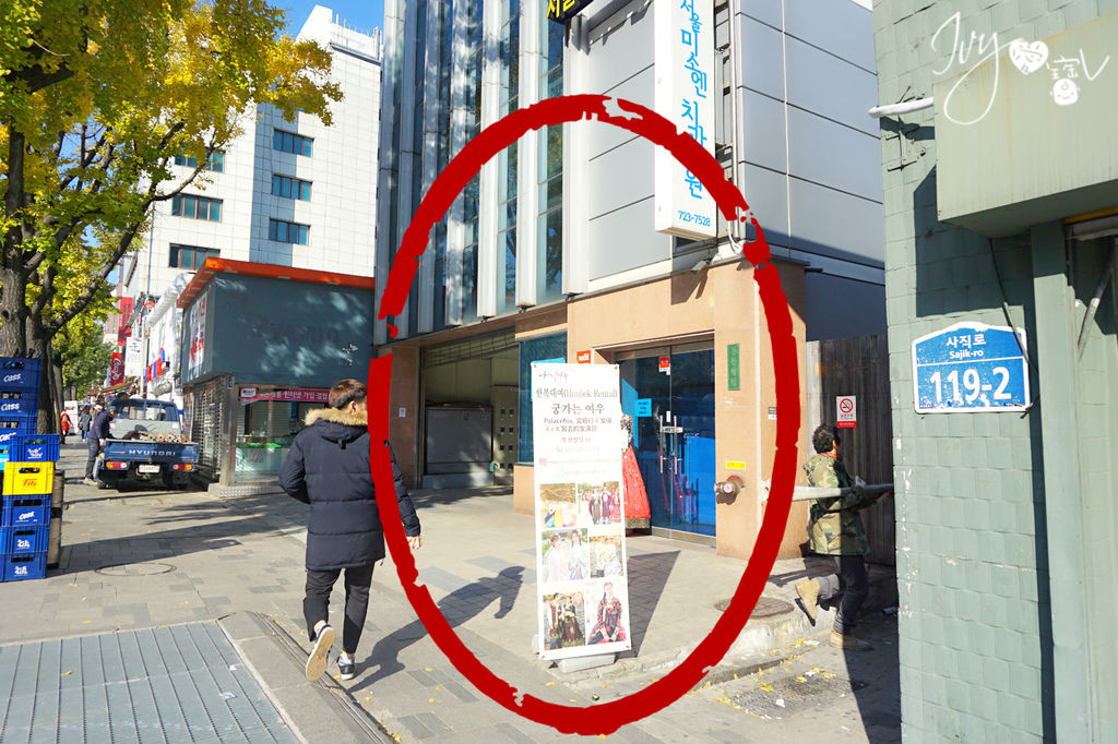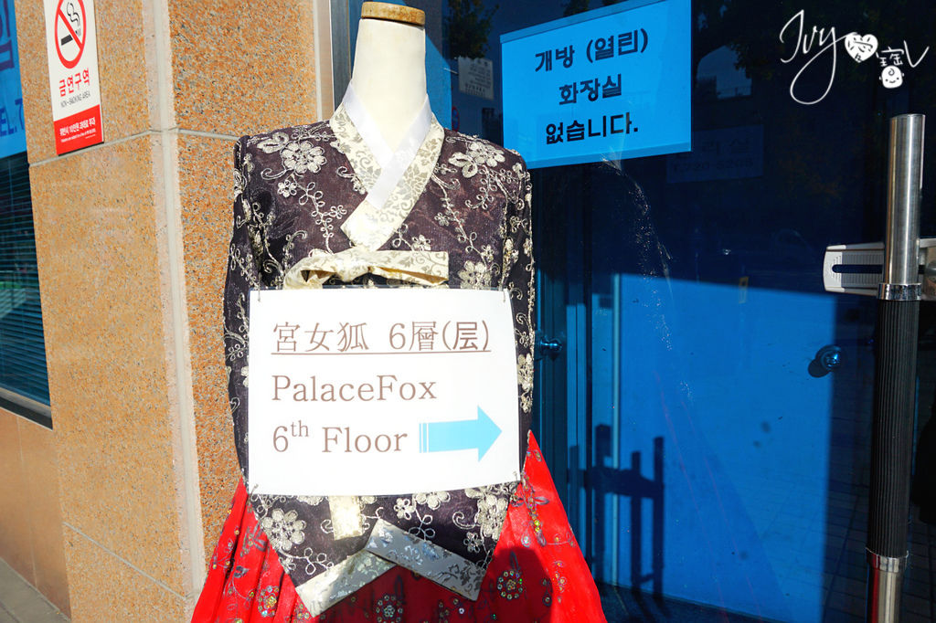 宮女狐韓服地址:서울특별시 종로구 사직로 119 목천빌딩 6F ( 景福宮站1號出口步行1分鐘,搭電梯至六樓。)