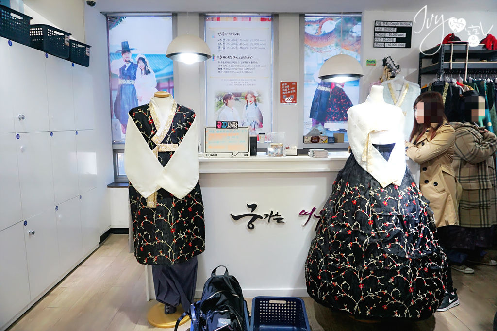 店員會先指引你去將包包、個人物品放好,這樣才比較好挑選韓服、試穿