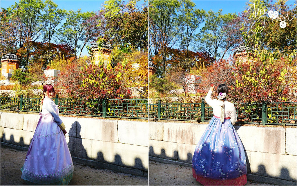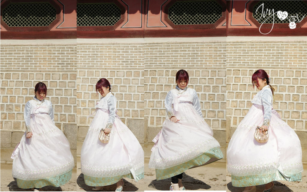 這樣拍出的人景合一的韓服美照真的就很不錯,p.s.Ivy真的不是專業攝影師,但按表操課的拍加以後製濾鏡做為加分,真的會拍出張張讓人羨慕的照片。